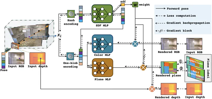 PlanarNeRF: Online Learning of Planar Primitives with Neural Radiance Fields